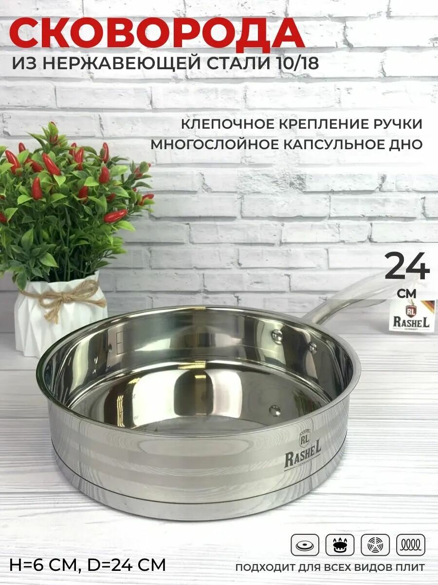 Сковорода из нержавеющей стали 24 см для газовой электрической и индукционной плиты: сравнение цен, характеристики, фото, актуальное наличие и цены.
