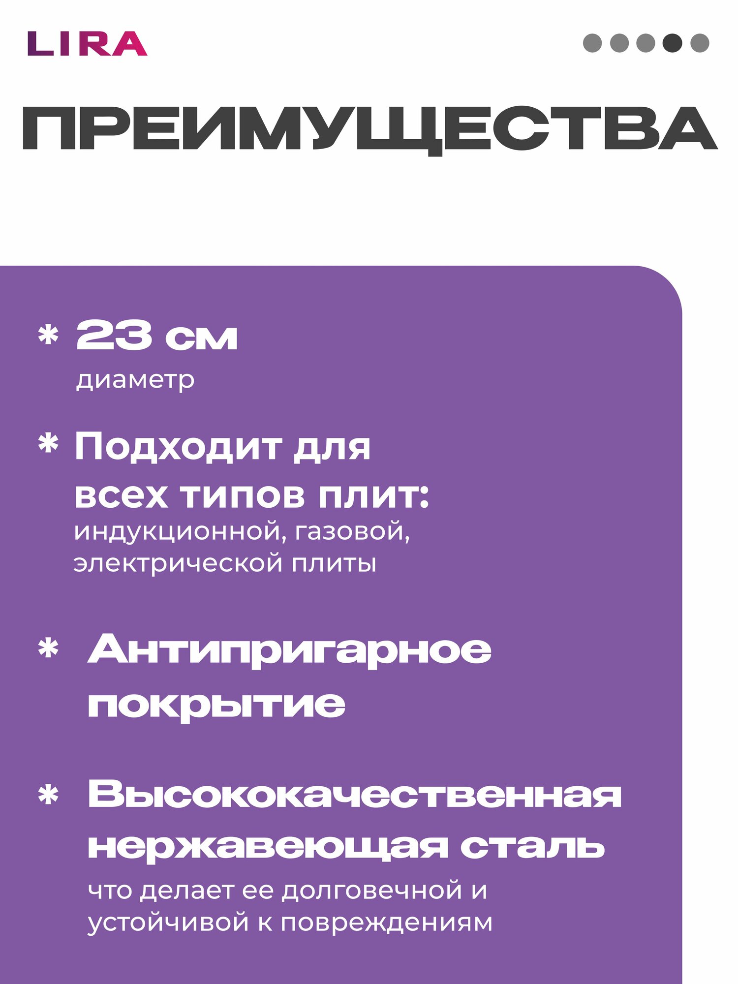 Купить Сковорода из нержавеющей стали, антипригарное покрытие 24 см Lira LRSK 006 для индукционной, газовой, электрической плиты с доставкой по всей России. Сковорода из нержавеющей стали, антипригарное покрытие 24 см Lira LRSK 006 для индукционной, газовой, электрической плиты: сравнение цен, характеристики, фото, актуальное наличие и цены.
