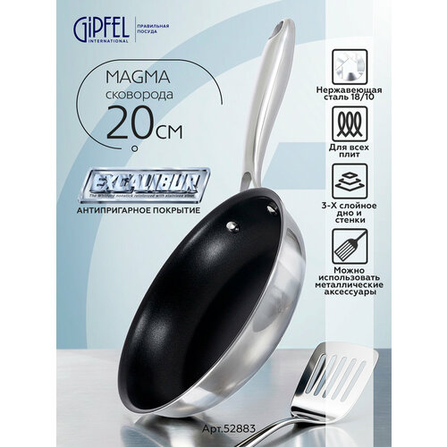 Сковорода из нержавеющей стали Gipfel Magma 52883 диаметром 20 см и высотой 4,5 см.