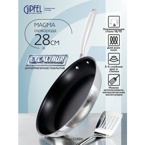 Сковорода из нержавеющей стали Gipfel Magma 52886 диаметром 28 см и высотой 5 см.