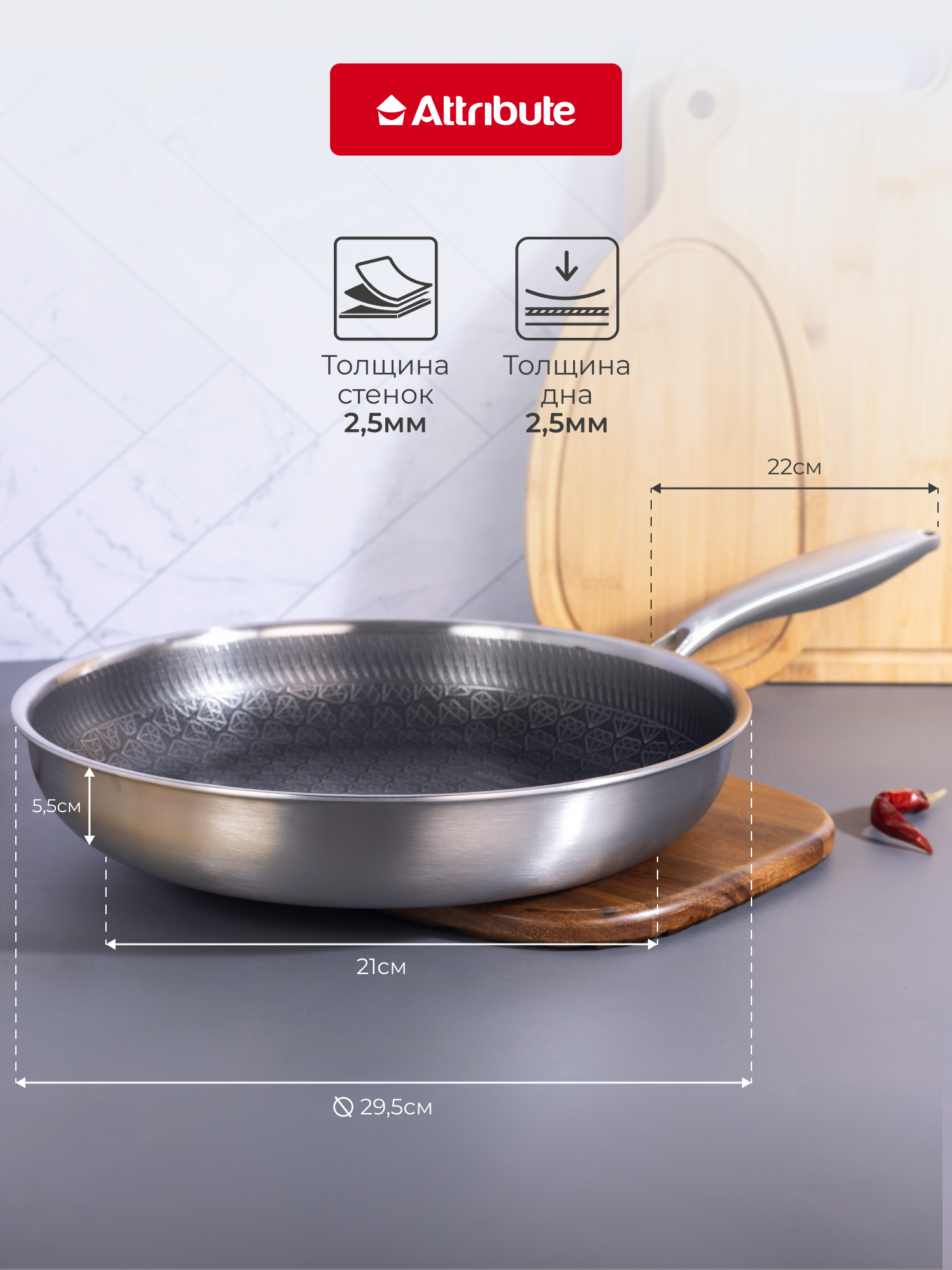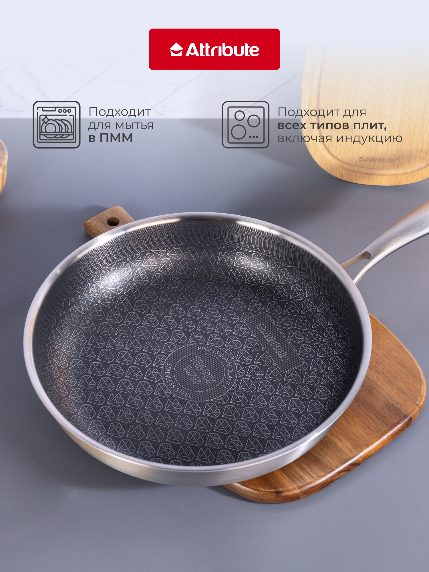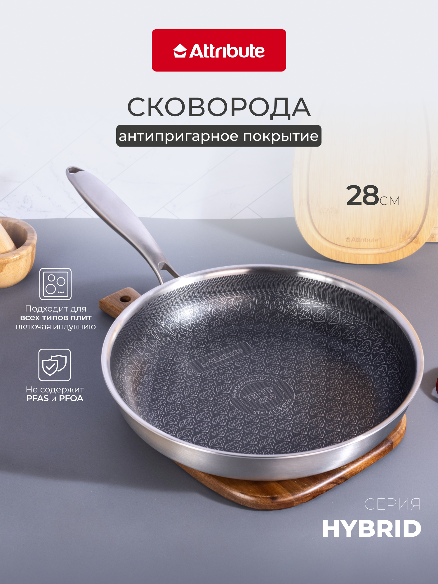 Сковорода из нержавеющей стали с антипригарным покрытием Attribute «HYBRID» 28 см, для всех видов плит: сравнение цен, характеристики, фото, актуальное наличие и цены.