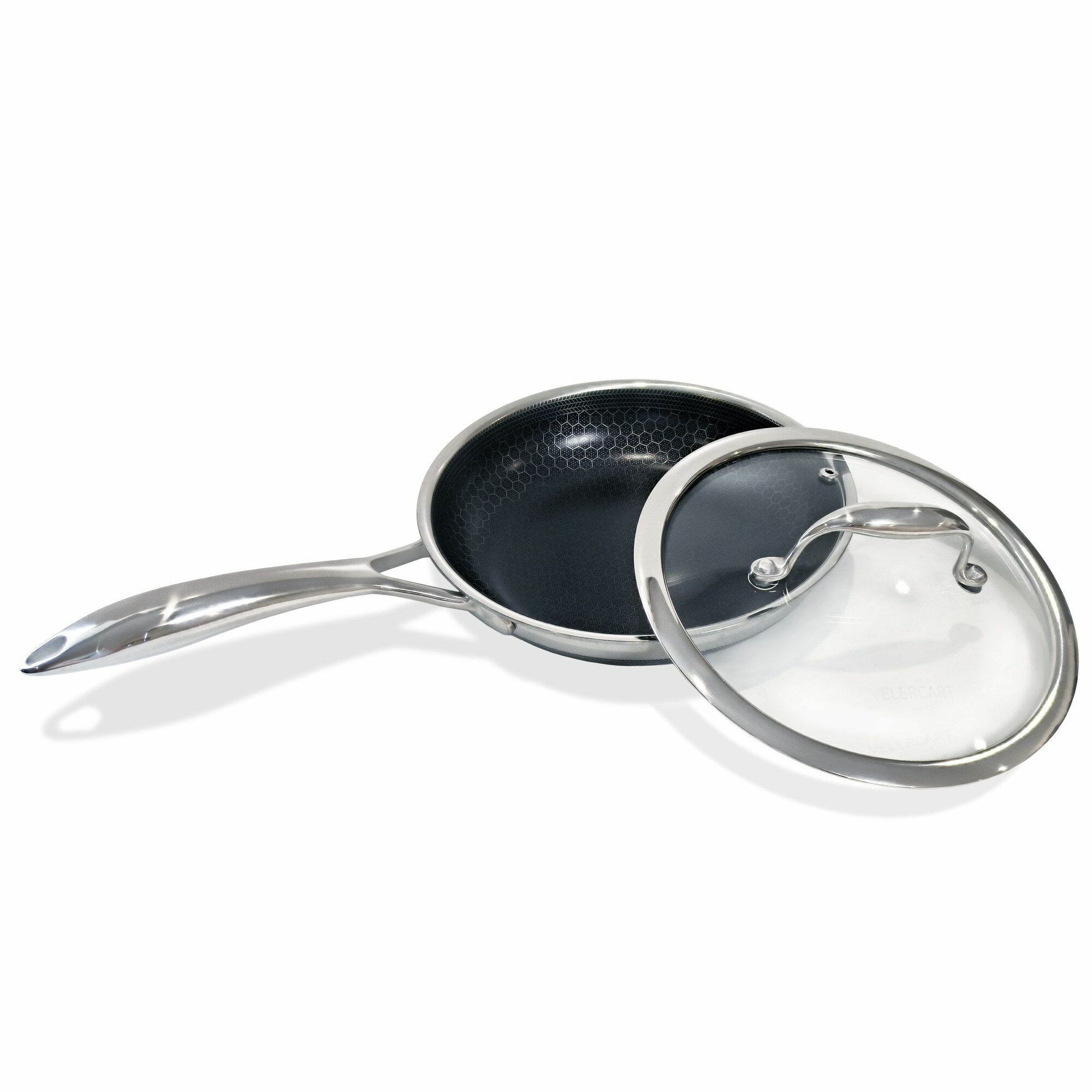 Сковорода премиум-класса из нержавеющей стали высочайшего качества, с 3-слойным дном и инновационным антипригарным покрытием с рельефным рисунком в виде сот. Её легко мыть и при готовке можно пользоваться металлическими кухонными принадлежностями!