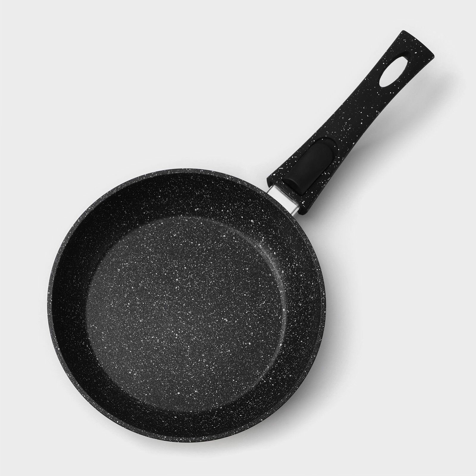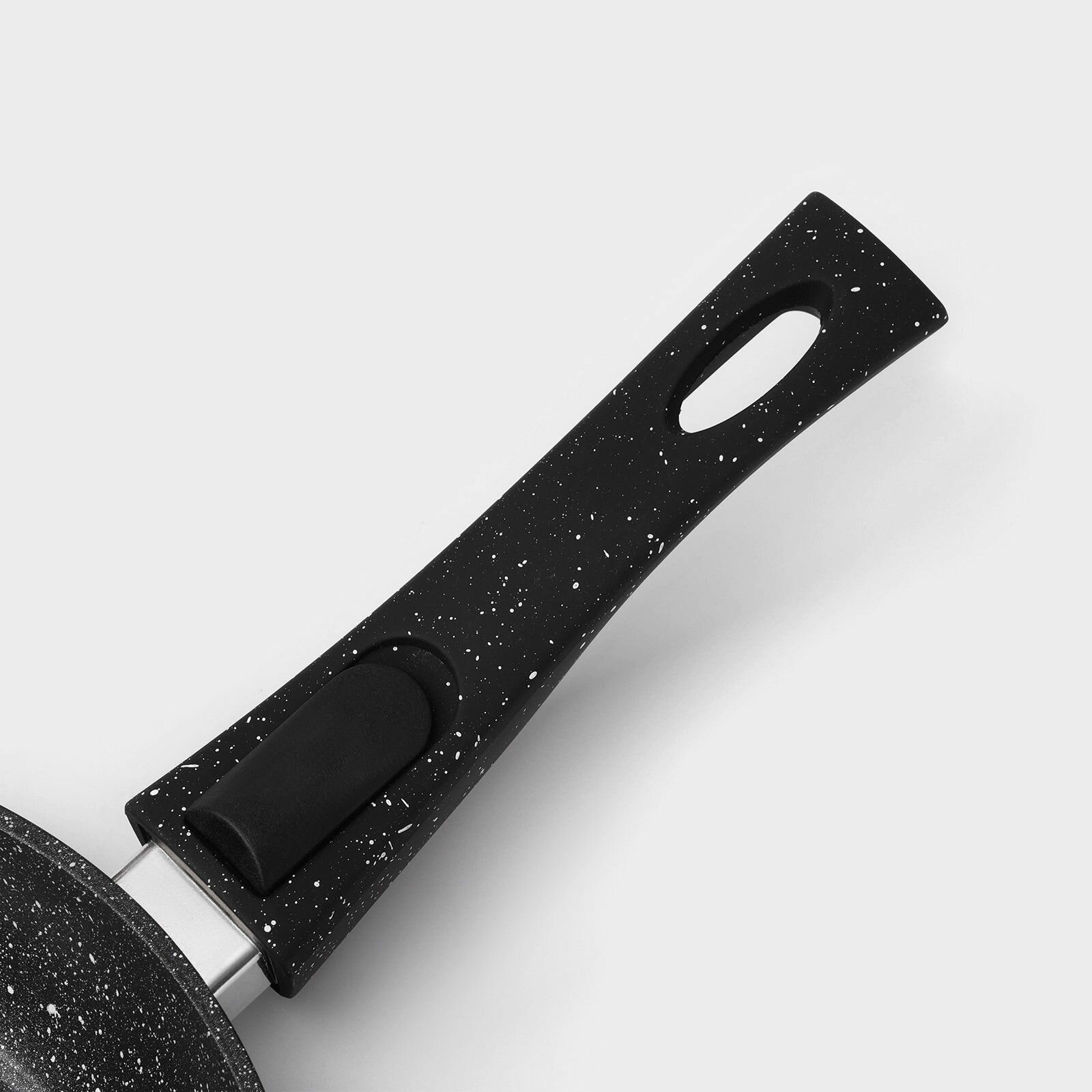 Чёрная кованая сковорода Magistro Dark — идеальный выбор для вашей кухни. Она оснащена съёмной ручкой soft-touch, которая обеспечивает удобство в использовании и хранении. Благодаря антипригарному покрытию, вы сможете готовить разнообразные блюда с минимальным количеством масла, сохраняя при этом их полезные свойства. Индукционное дно сковороды обеспечивает быстрый и равномерный нагрев, что сокращает время приготовления и экономит энергию. Съёмная ручка облегчает процесс мытья и хранения сковороды.