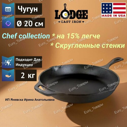 *На 15% легче, чем классические сковороды Lodge *Скругленные стенки для более удобной работы лопаткой *Имеет удлиненную и приподнятую эргономичную ручку *Более широкие носики для слива масла и жидкости, чем у классических сковород *Обработана 100% натуральным растительным маслом в заводских условиях *Полностью готова к использованию, не требует прокаливания и специальной подготовки *Подходит для всех типов газовых и электрических плит *Идеальное решение для индукционных варочных поверхностей *Можно использовать в духовке, на открытом огне, на костре и в угольном гриле *Обеспечивает равномерный нагрев и долго сохраняет температуру *Сделано в США
