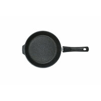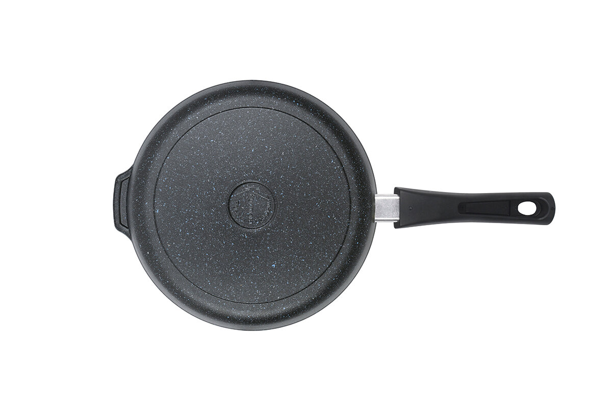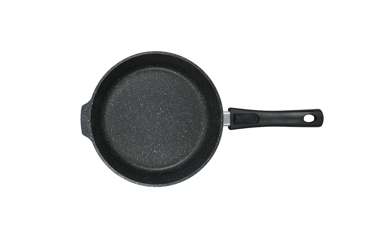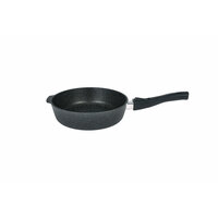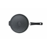 Новая линейка литой алюминиевой посуды с антипригарным покрытием «Granit», цвет black, сочетающую в себе стильный «гранитный» дизайн и удивительную прочность. Отличительная особенность данной линейки - корпуса посуды увеличенного объема – 2,5л, 3,5л, 4,5л с цельнолитыми ручками и стеклянной, накладной крышкой из термостойкого стекла с бакелитовой ручкой черного цвета, а также глубокие сковороды с высокими, слегка скошенными бортами. Диаметр сковород 220, 240, 260, 280мм со съемными и несъемными бакелитовыми ручками черного цвета. Геометрия корпусов посуды обеспечивает быстрый нагрев и равномерное распределение тепла. Посуда подходит для запекания, тушения, варки. Благодаря уникальному противопригорающему покрытию, обладающему исключительными антипригарными свойствами, прочностью и износостойкостью, посуда подходит для ежедневного использования и будет служить не один год. Высокая прочность антипригарного покрытия позволяет использовать неострые кухонные металлические принадлежности. Окрашенное дно кастрюль и сковород не потемнеет в процессе мойки в посудомоечной машине, а также защитит стеклокерамическую поверхность от царапин.