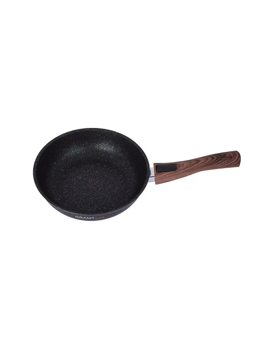 ОАО «Кукморский завод Металлопосуды» (Россия) с 1950 г. производит высококачественную литую алюминиевую посуду с керамическим и антипригарным покрытием ведущих мировых производителей.<$>Инновационное покрытие, усиленное сверхтвердыми минералами нового поколения, близкими по твердости алмазу. Технология «Weilburger Coatigs Gmbh» (Германия), позволяет использовать даже неострые металлические кухонные принадлежности и продлевает срок службы посуды более чем в 7 раз!<$>Основание посуды – толстостенный литой корпус из пищевого алюминия, ГОСТ 1583-93.<$>Литая посуда производится методом кокильного литья, которое придает особую прочность. Благодаря толстостенному корпусу, посуда с антипригарным покрытием обладает всеми достоинствами классической посуды из литого алюминия: долгим сроком службы и устойчивостью к высоким температурам, способностью равномерно распределять тепло и сохранять его в течение долгого времени. Толщина стенок и дна от 4,5 до 6 мм исключает деформацию корпуса изделий.<$>Метод нанесения антипригарного покрытия – напыление, ГОСТ Р 56674-2018<$>Для нанесения АП покрытия использует метод напыления. Метод напыления предназначен для нанесения антипригарных покрытий на литейные формы - на посуду более высокой ценовой категории. Антипригарное покрытие, наносимое данным методом, отличается высокой надёжностью и долговечностью.<$>Ultra granit - экологически безопасное антипригарное покрытие нового поколения WEILBURGER Coatings GmbH (Германия). Не используются синтетические полимеры – PFOA (перфлюорооктановая и перфтороктановая кислота) и при нагревании не выделяются вредные токсичные испарения и канцерогенные вещества. Безопасность подтверждена Регламентом ЕС № 1935/2004, "Food and Drug Administration" (США) № CFR 21, ГОСТ Р 51162-98, ГОСТ 17151-81.<$>Проточка дна посуды с антипригарным покрытием<$>Проточка необходима для улучшения теплопроводности посуды (без проточки дна посуда дольше нагревается, т. к. любое покрытие уменьшает степень теплопроводности алюминия) и для выравнивания дна. Чем больше площадь соприкосновения дна посуды с плитой, тем быстрее и равномернее прогревается посуда. К тому же проточка дна позволяет использовать посуду как на традиционных газовых, электрических, так и на стеклокерамических плитах. На дне каждого изделия имеется логотип «Kukmara».<$>Высокоэффективное равномерное распределение тепла по всей поверхности, эргономичность<$>Литая толстостенная антипригарная посуда обладает предельно высокой теплопроводностью и способностью равномерно распределять тепло по всей поверхности изделия. Литой толстостенный корпус также обеспечивает эргономичность и длительное сохранение тепла на изделии.<$>Основные качества сковороды сгг222а:<$>значительная толщина стенок и дна исключает деформацию корпуса, гарантирует ее долговечность, обеспечивает необходимую прочность покрытия; прочное покрытие, усиленное сверхтвердыми минералами нового поколения, близкими по твердости алмазу;<$>экологически безопасное антипригарное покрытие без содержания PFOA;<$>идеальное распределение тепла по всей поверхности посуды, длительное сохранение тепла;<$>возможность использования минимального количества жира;<$>удобная ненагревающаяся ручка из бакелита;<$>антипригарное алмазное покрытие наносится методом напыления, который гарантирует исключительную стойкость покр