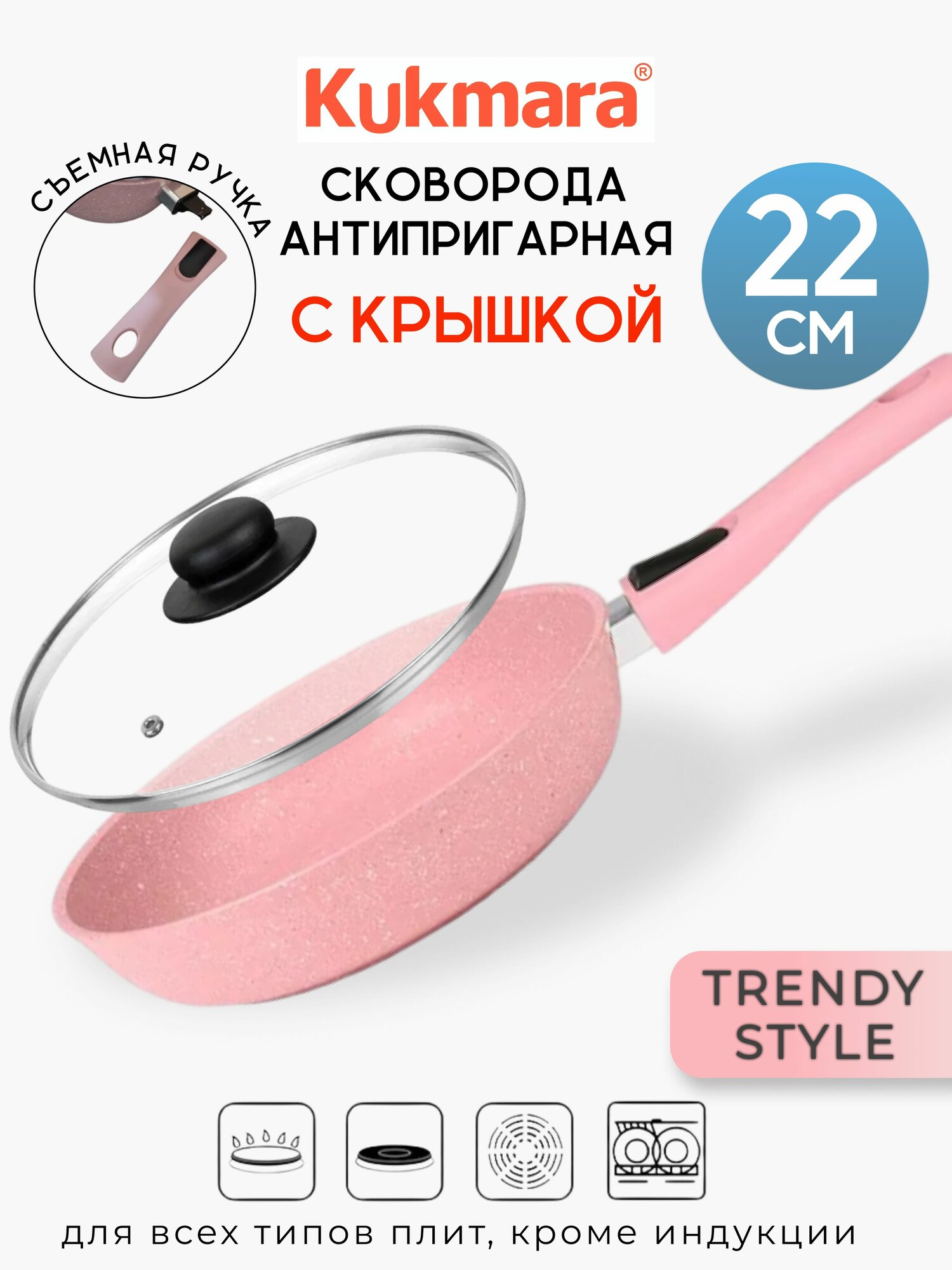 Сковорода Kukmara Trendy Style Rose с крышкой, со съемной ручкой 22 см: сравнение цен, характеристики, фото, актуальное наличие и цены.