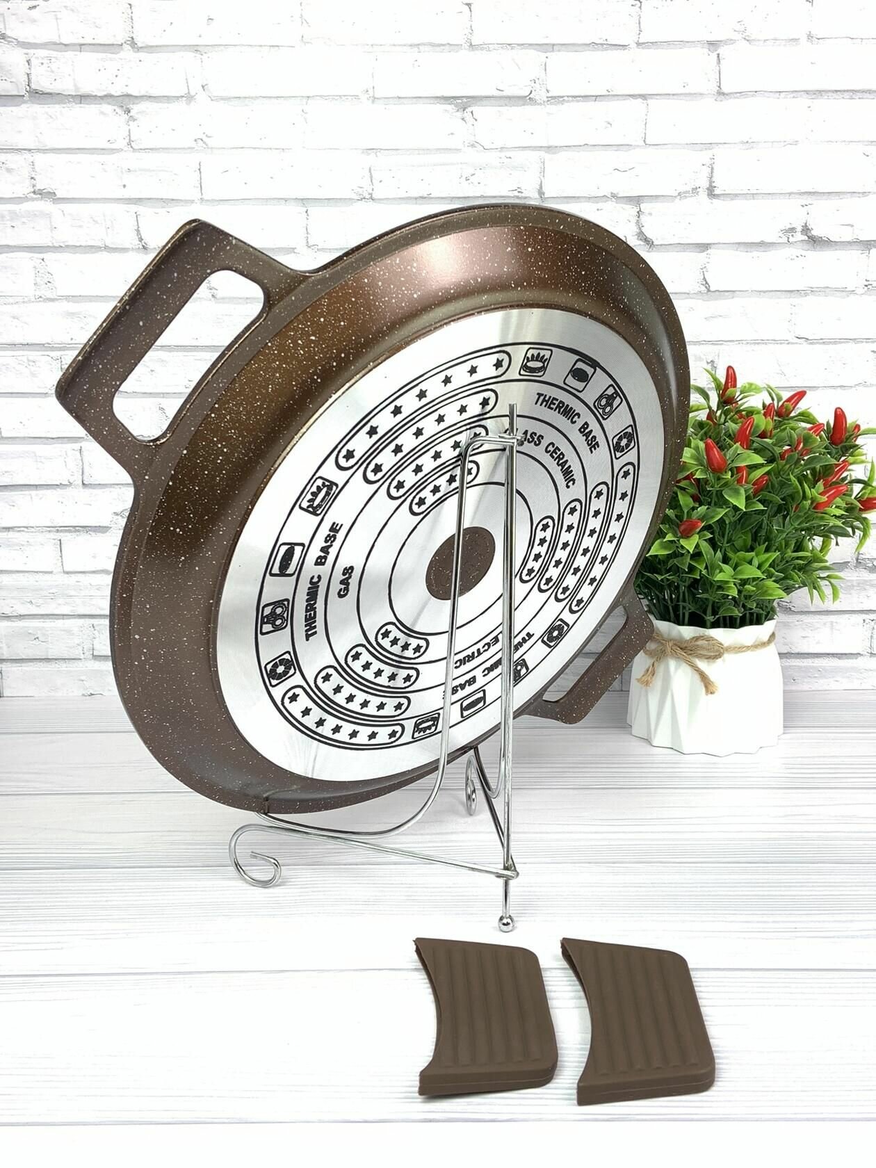 Купить Сковорода-лавашница Zeidan 32 см из литого алюминия с антипригарным покрытием и с силиконовыми накладками с доставкой по всей России.