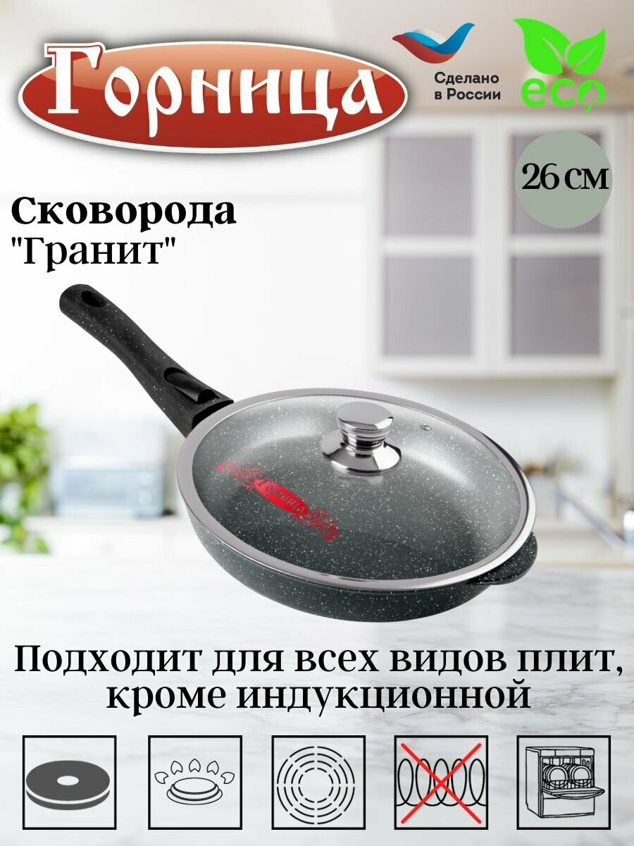 Купить Сковорода литая алюминиевая 26 см Гранит, антипригарное покрытие, Горница съемная ручка с крышкой с доставкой по всей России. Сковорода литая алюминиевая 26 см Гранит, антипригарное покрытие, Горница съемная ручка с крышкой: сравнение цен, характеристики, фото, актуальное наличие и цены.