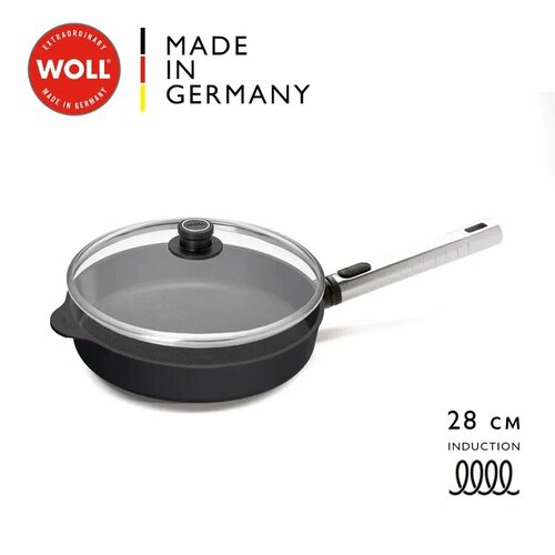 Сковорода литая WOLL (Германия) Logic XR PRO для индукции 3,5 л, h-5 см, d-28 см, съемная ручка, с жаропрочной крышкой: сравнение цен, характеристики, фото, актуальное наличие и цены.
