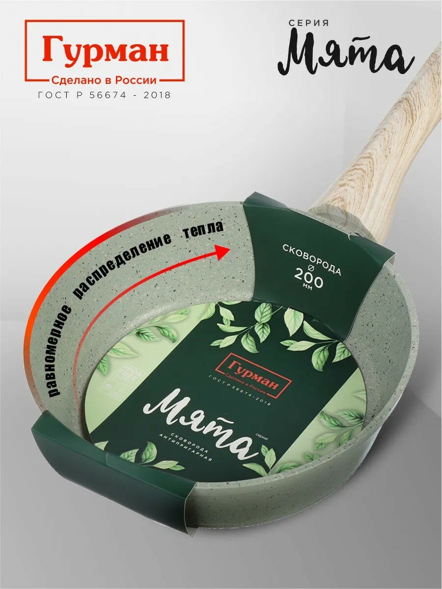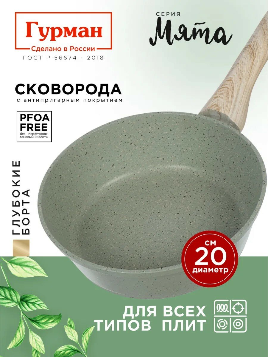 Сковорода литой алюминий, 20 см, антипригарное покрытие, Гурман, Мята, индукция, ГМ2001МЛ: сравнение цен, характеристики, фото, актуальное наличие и цены.