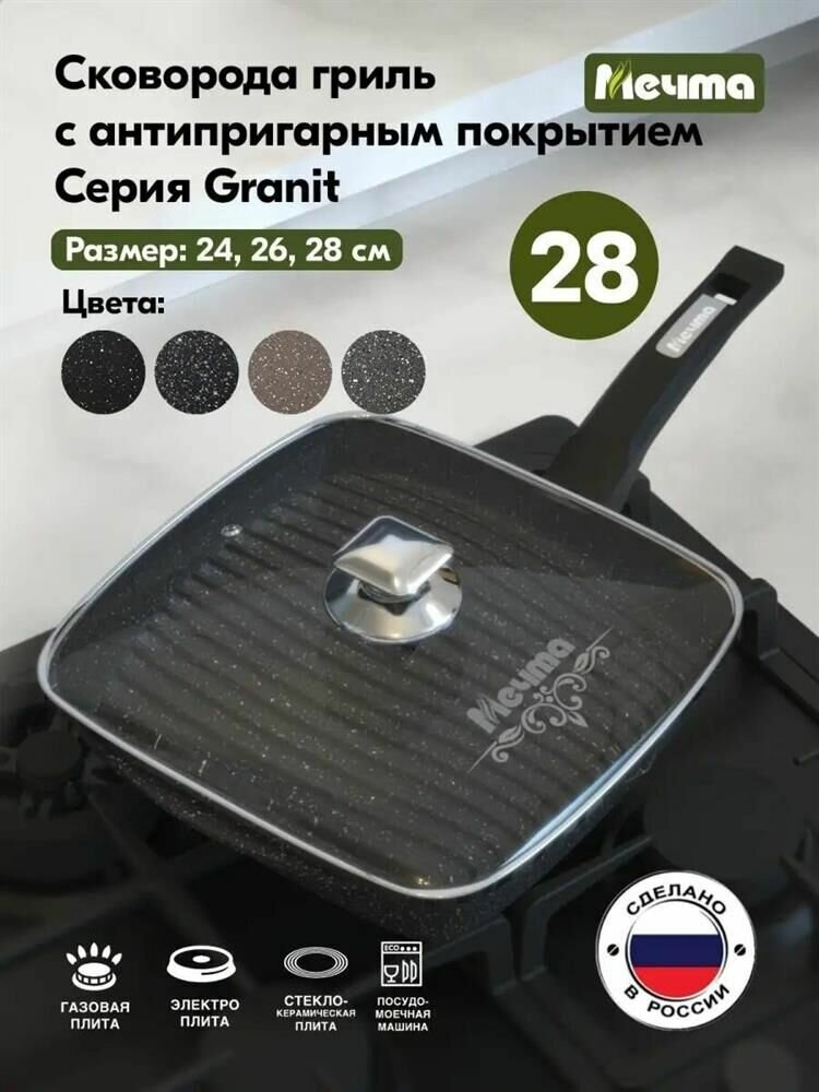 Купить Сковорода мечта 68802 Гранит black 28*28см с доставкой по всей России. Сковорода мечта 68802 Гранит black 28*28см: сравнение цен, характеристики, фото, актуальное наличие и цены.