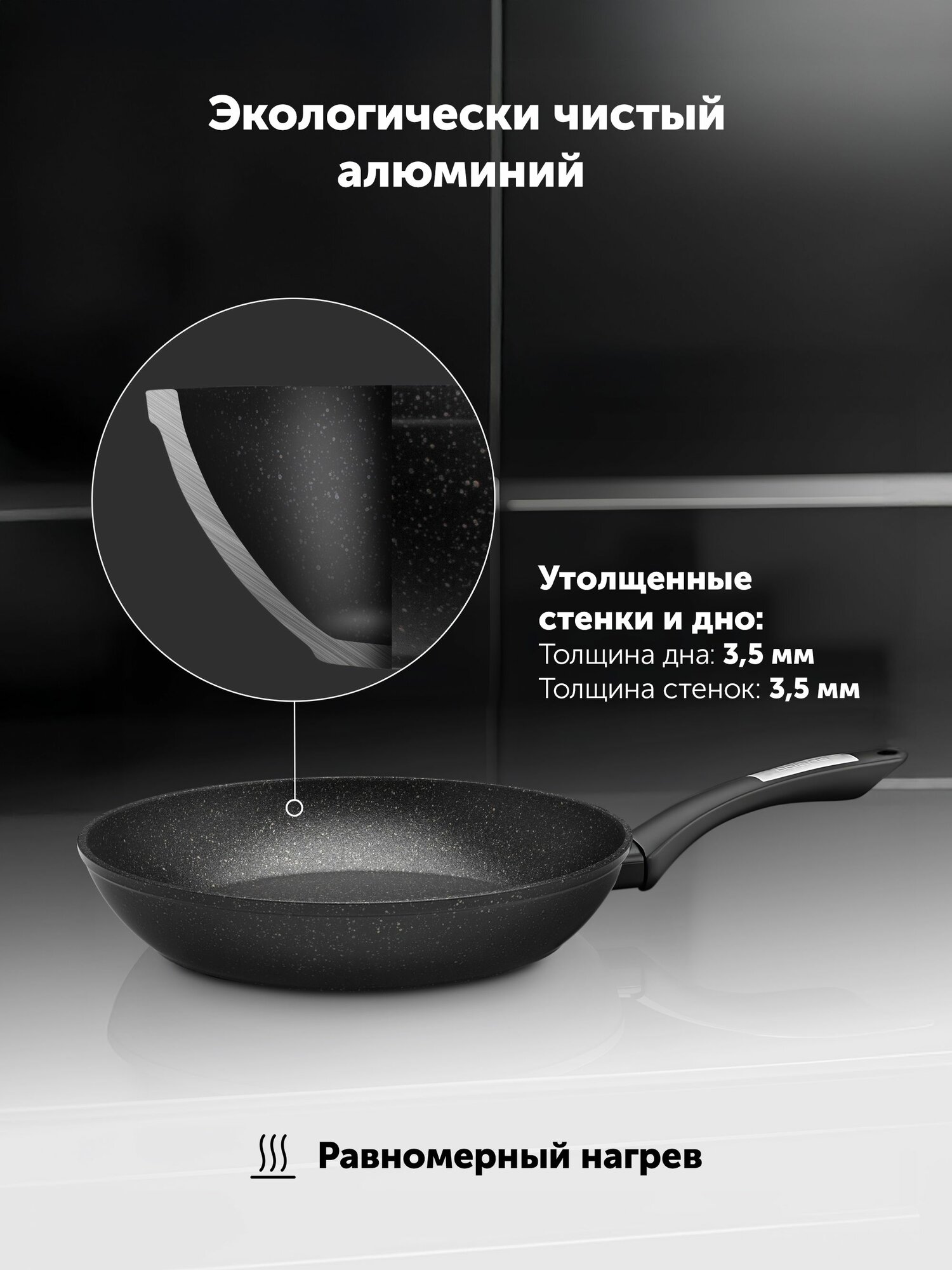 Купить Сковорода 28 см Polaris Monolit-28F с антипригарным покрытием, подходит для индукционной плиты, чёрный с доставкой по всей России.