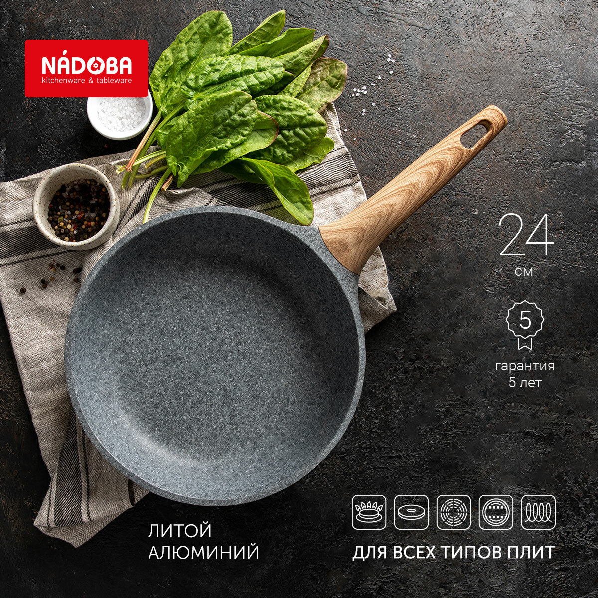 Сковорода с антипригарным покрытием NADOBA, серия MINERALICA, диаметр 24 см, литой алюминий: сравнение цен, характеристики, фото, актуальное наличие и цены.