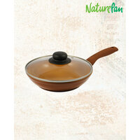 Артикул: 0718-126. Размеры: 4.6 x 20 x 38 см, Материал: Литой алюминий, Диаметр: 20 см, Вес: 940 гр, Тип покрытия: Антипригарное, Тип плиты: Для газовой плиты, Размер упаковки: 21 x 5 x 37 см, Материал крышки: Стекло, Форма: Круглая, Цвет: Коричневый, Съёмная ручка: Нет, Крышка: Да, Капсульное дно: Нет, Вид сковороды: Стандартная, Особенность: Индукционная плита, Высота стенки, см: 5, Диаметр дна, см: 15, Толщина дна, мм: 4.5, Толщина стенки, мм: 4.5. Корпус сковороды NaturePan выполнен из прочного кованого алюминия: это делает её устойчивой к повреждениям и долговечной. На внутреннюю поверхность нанесено керамическое антипригарное покрытие. Оно не содержит PFOA, PTFE и абсолютно безопасно для пищевых продуктов. Особенности: быстрый прогрев поверхности; значительная экономия масла; удобная ручка, стойкая к нагреву; крышка с пароотводом; привлекательный дизайн. Изделие отлично подходит для ежедневного приготовления разнообразных блюд из мяса, рыбы, птицы и овощей. Можно использовать на газовых, электрических, стеклокерамических, галогеновых и индукционных плитах. Рекомендуется ручная мойка мягкими губками и неабразивными средствами. Не допускайте резких перепадов температуры.