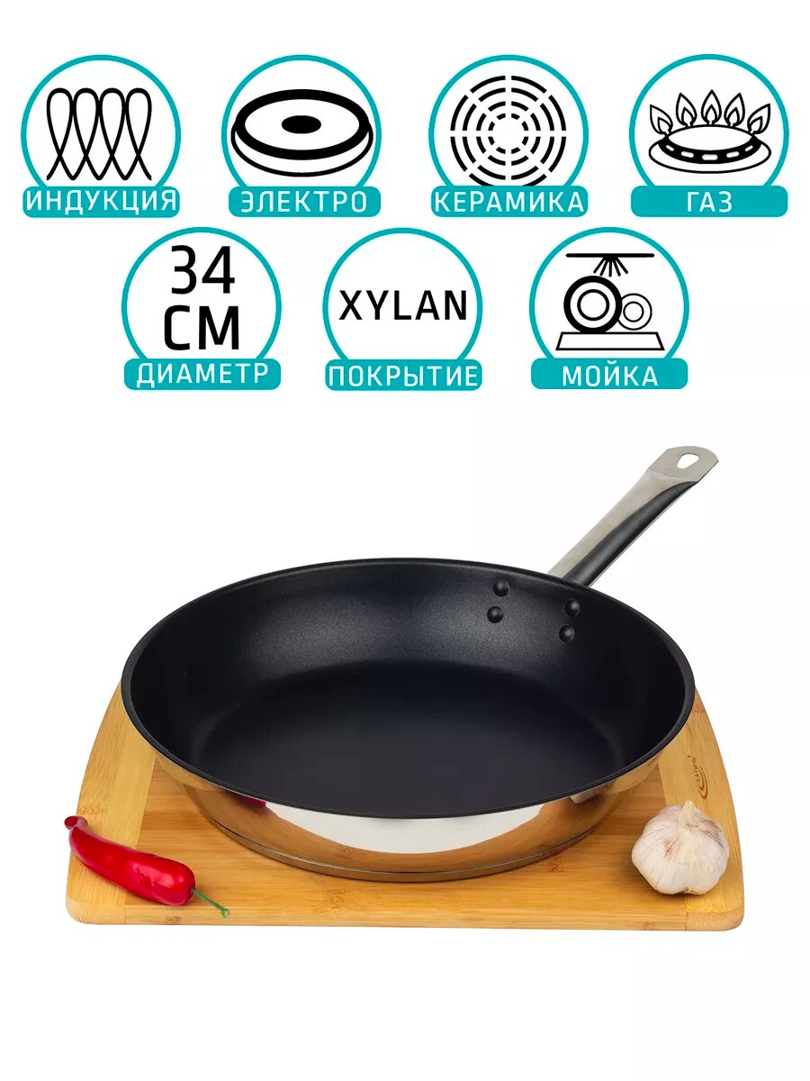 Купить Сковорода 34см антипригарная Xylan, индукция, нерж с доставкой по всей России. Сковорода 34см антипригарная Xylan, индукция, нерж: сравнение цен, характеристики, фото, актуальное наличие и цены.
