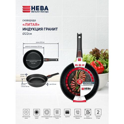 Классическая сковорода 22 см со съемной ручкой Нева Металл Посуда, серия «Литая», для индукционной и всех типов плит с антипригарным покрытием, безупречно подходит для ежедневного использования, создана из материалов высшего класса безопасности на новейшем оборудовании.