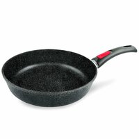 Сковорода многофункциональна, обеспечивает комфорт и легкость в использовании. Форма сковороды идеально подходит для большинства рецептов. Благодаря высоким бортам и большой полезной площади дна, сковорода отлично подходит для приготовления таких блюд как котлеты, шницели, тефтели, голубцы, жаркое, гуляш.