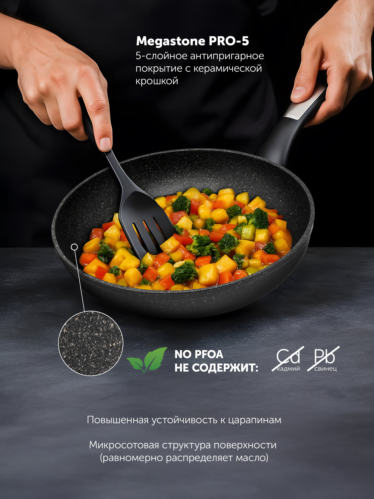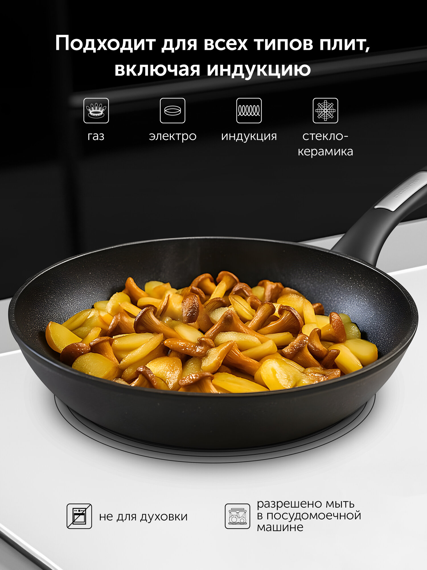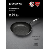 Купить Сковорода Polaris Monolit-20F с антипригарным покрытием / 20 см подходит для индукционной плиты, чёрный с доставкой по всей России.