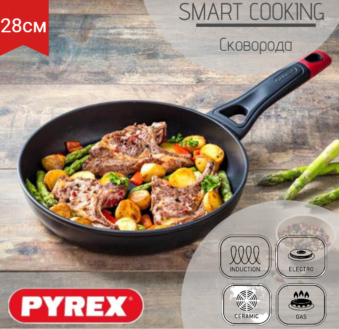 Сковорода Smart Cooking 28см, с антипригарным покрытием, PYREX, подходит для всех типов плит, для индукции: сравнение цен, характеристики, фото, актуальное наличие и цены.