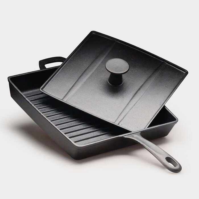 Сковорода рифленая чугунная с крышкой — прессом Luxstahl, 27х27 см: сравнение цен, характеристики, фото, актуальное наличие и цены.
