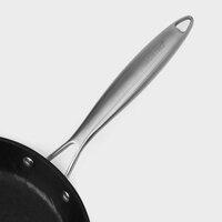 Сковорода Magistro Rock Stone диаметром 26 см и высотой 4,8 см изготовлена из алюминия с антипригарным покрытием Greblone C3. Это обеспечивает равномерное распределение тепла и легкость в уходе за сковородой.