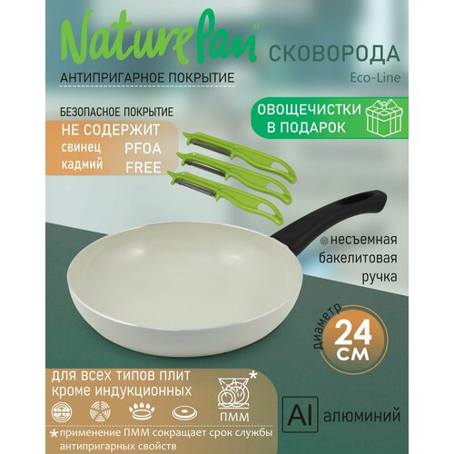 Купить Сковорода с антипригарным керамическим покрытием, d24см, набор овощечисток в подарок, NaturePan Eco-Line с доставкой по всей России. Сковорода с антипригарным керамическим покрытием, d24см, набор овощечисток в подарок, NaturePan Eco-Line: сравнение цен, характеристики, фото, актуальное наличие и цены.