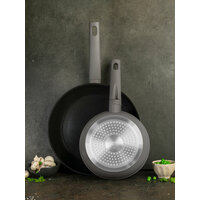 Сковорода с антипригарным покрытием; стеклянная крышка с силиконовым ободом