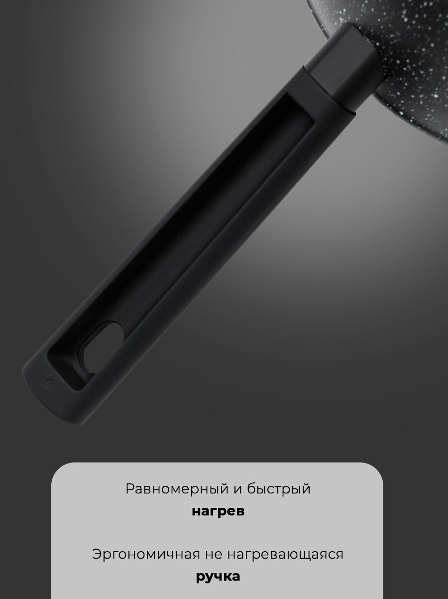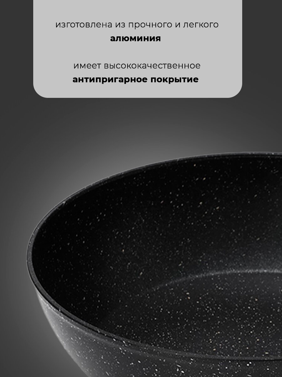 - Удобство использования: Эргономичная ручка и лёгкость сковороды делают процесс готовки комфортным и безопасным.