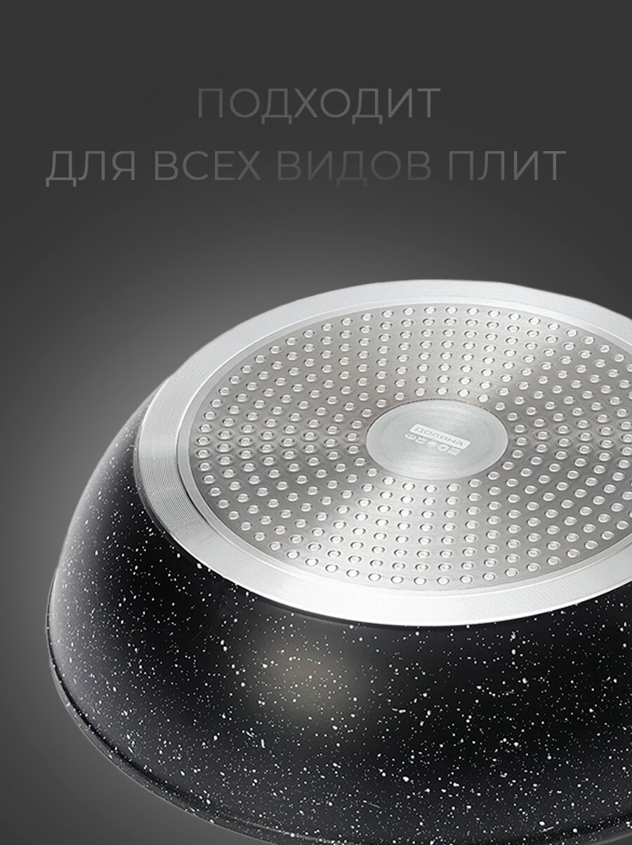 - Универсальность: Подходит для всех типов плит, включая индукционные, что делает её практичной и универсальной.
