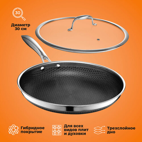 Сковорода с антипригарным покрытием и трехслойным дном, диаметр 30 см, крышка в комплекте, Oberhof Kochenstern W-20: сравнение цен, характеристики, фото, актуальное наличие и цены.