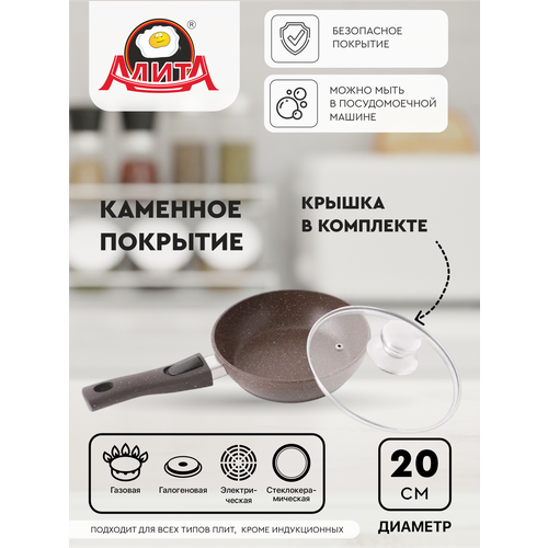 Сковорода с крышкой 20 см, со съемной ручкой и антипригарным покрытием - универсальное решение для каждой кухни! Современное антипригарное покрытие, ручка из термостойкого пластика и правильная форма - залог комфортного использования каждый день! Сковородка произведена из литого алюминий, а значит превосходит в своих характеристиках устаревшие чугунные сковороды - дольше служит, лучше сохраняет покрытие, легче в руках. При выборе сковороды важно обратить внимание на покрытие. Если сковорода антипригарная, то к рабочей поверхности качественной посуды пища при готовке не прилипает, а по окончании готовки ее остатки без каких-либо проблем удаляются мягкой губкой под струей воды. Благодаря этому покрытию ваша сковорода будет выглядеть как новая даже после множества использований. Вы не будете беспокоиться о том, что покрытие может сколоться или потерять свои свойства со временем. Опытные хозяйки знают, что хорошая алюминиевая сковорода должна быть увесистой в руке и иметь толстые стенки и дно, ведь тогда пища будет прогреваться равномерно. Толщина стенок у литой посуды "Алита" составляет 3.5 мм а толщина дна 6 мм! Это один из лучших показателей среди аналогичной импортной и отечественной продукции. Ручка из термостойкого пластика позволяет держать сковороду без прихватки, а ее эргономичная форма и отсутствие скольжения в руках делают процесс готовки комфортным и безопасным, а отстегнув ручку можно использовать сковороду в духовке! Сковорода мечта - это сковорода с крышкой и съемной ручкой от Алиты! И немаловажное качество - сковородка с антипригарным покрытием 20 см еще и отличный подарок жене, маме, сестре, бабушке или подарок для коллеги или подруги, который наполнит кухню и дом уютом! Красивая и функциональная кухонная утварь служит прекрасным подарком на день рождения, юбилей, на Новый год, на свадьбу, на 8 марта, на новоселье и просто порадовать без повода. Подходит для духовой печи!
