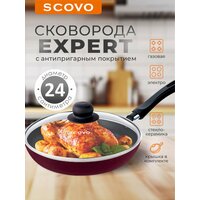Купить Сковорода с крышкой 24 см антипригарная с несъемной ручкой, алюминиевая SCOVO с доставкой по всей России.