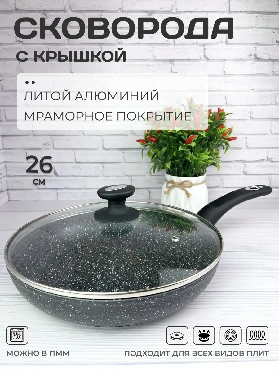 Сковорода с крышкой 26 см антипригарная для всех видов плит, включая индукционнную: сравнение цен, характеристики, фото, актуальное наличие и цены.