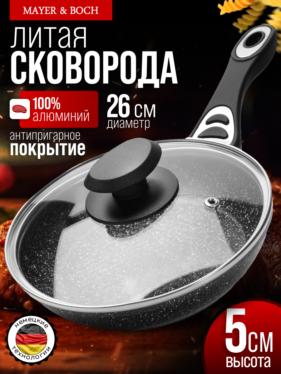 Купить Сковорода с крышкой 26 см антипригарная MAYER&BOCH с доставкой по всей России. Сковорода с крышкой 26 см антипригарная MAYER&BOCH: сравнение цен, характеристики, фото, актуальное наличие и цены.