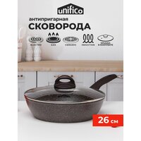 Сковорода упакована в красивую цветную картонную коробку, станет прекрасным подарком для ценителей качественной и надежной кухонной техники. Сковороды серии Vigorosso от бренда Unifico — это ваш надежный помощник на кухне, который внесет нотку профессионализма в ваши кулинарные шедевры.