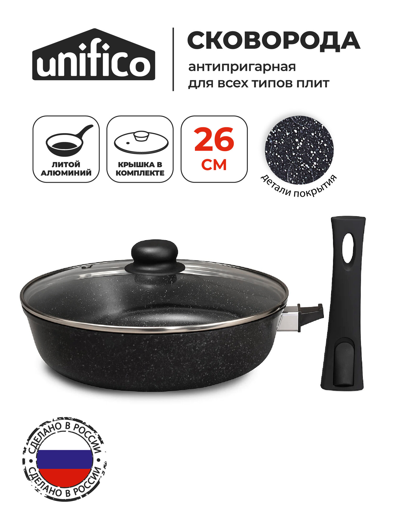 Сковорода с крышкой 26 см. со съемной ручкой (индукция) Unifico Bravo (защищенное дно): сравнение цен, характеристики, фото, актуальное наличие и цены.