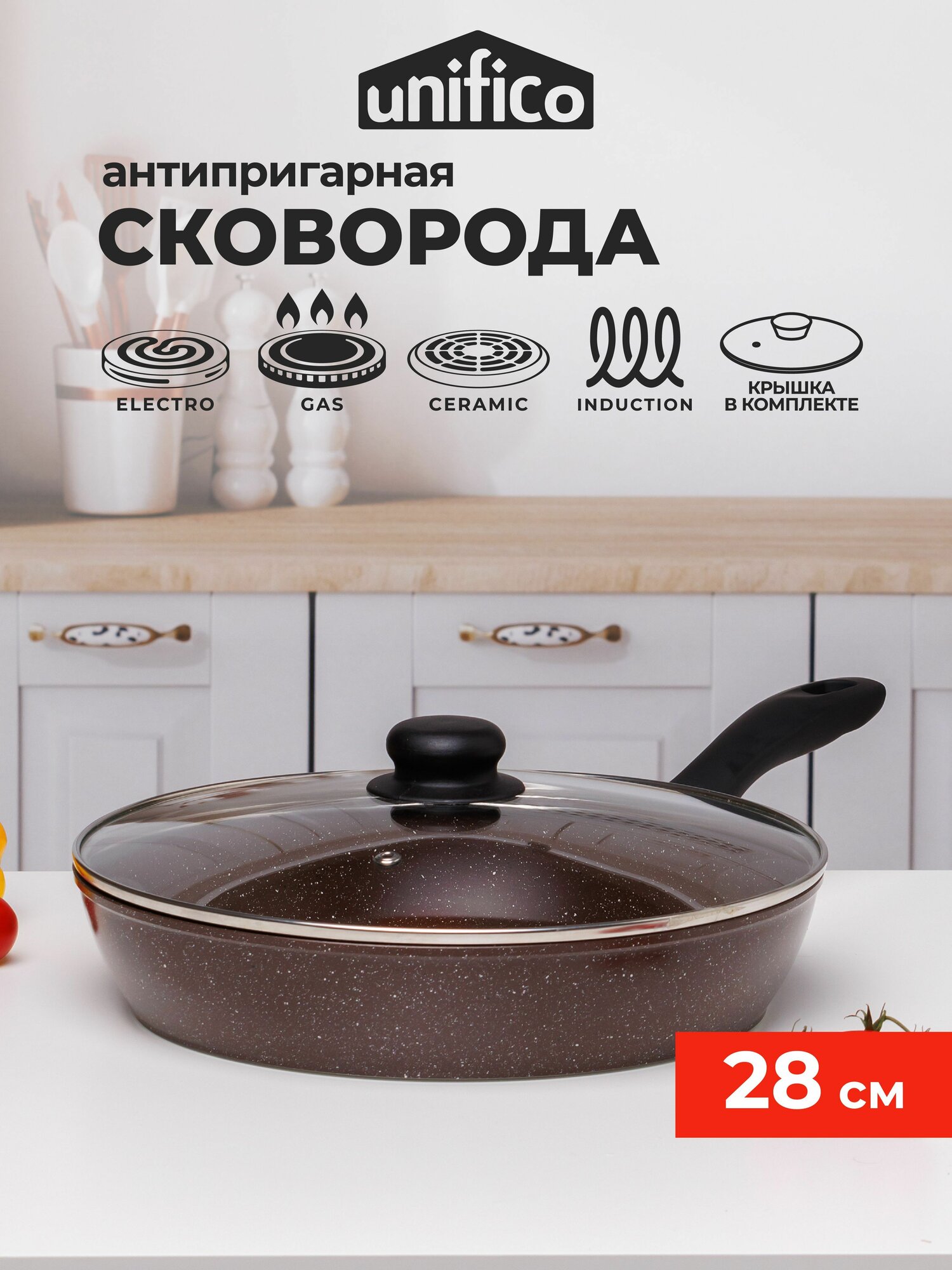 Сковорода с крышкой 28 см для индукционной плиты Unifico Сioccolato fondente (широкое дно, антипригарное покрытие): сравнение цен, характеристики, фото, актуальное наличие и цены.