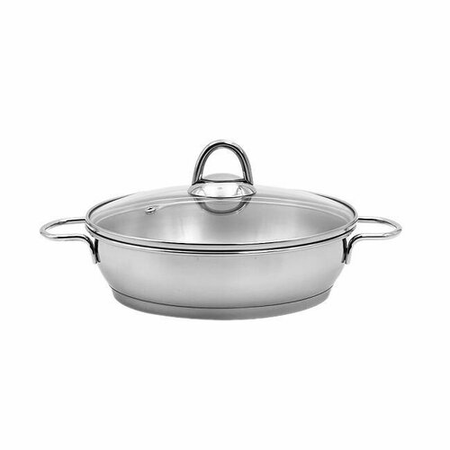 Сковорода с крышкой; Диаметр: 220мм; Объём: 1,5л; Материал: нержавеющая сталь; Толщина дна: 4,7мм; Толщина стенок: 0,8мм; Внешняя зеркальная полировка; Высота с крышкой 13,6 см Теплораспределительное дно; Стеклянная крышка; Тип корпуса: цельнотянутый; Тип ручек: прутковые; Подходит для всех видов кухонных плит; Можно мыть в посудомоечной машине (без крышки).