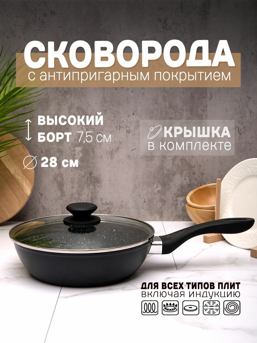 Купить Сковорода с крышкой антипригарная 28 см с доставкой по всей России. Сковорода с крышкой антипригарная 28 см: сравнение цен, характеристики, фото, актуальное наличие и цены.