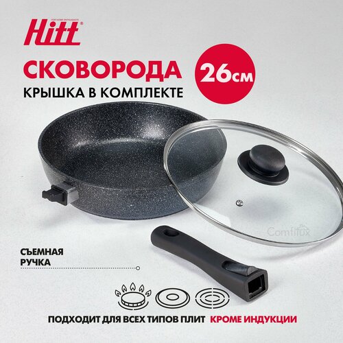 Сковорода с крышкой и съемной ручкой, 26 см, литая, с антипригарным покрытием, Hitt Starlight plus: сравнение цен, характеристики, фото, актуальное наличие и цены.