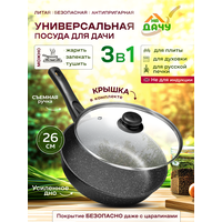 Купить Сковорода с крышкой На Дачу 26 см со съемной ручкой антипригарная литая DT26MW11 с доставкой по всей России.