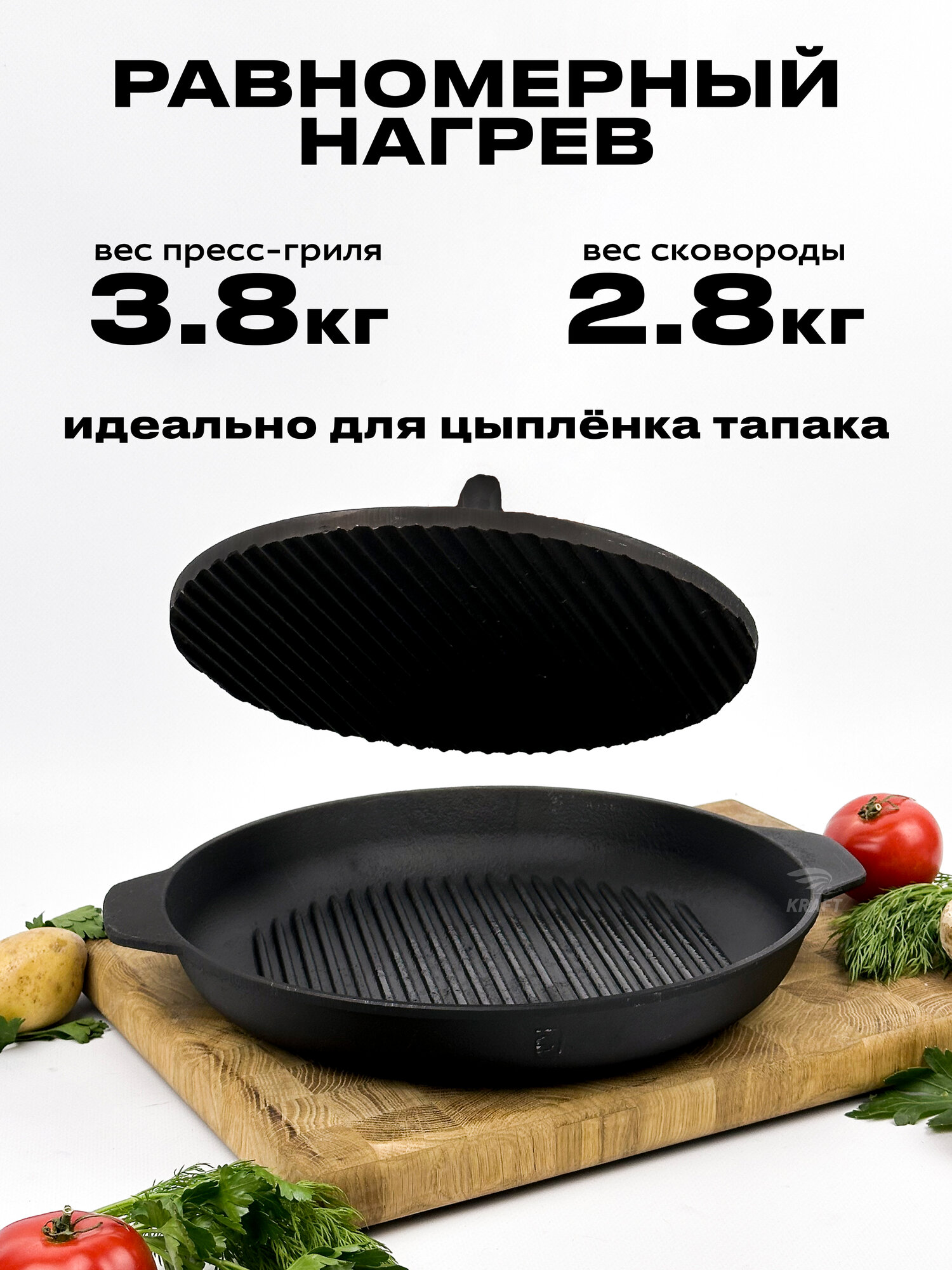 Купить Сковорода с крышкой пресс-гриль чугунная, для мяса и бургеров, 28 см с доставкой по всей России. Сковорода с крышкой пресс-гриль чугунная, для мяса и бургеров, 28 см: сравнение цен, характеристики, фото, актуальное наличие и цены.