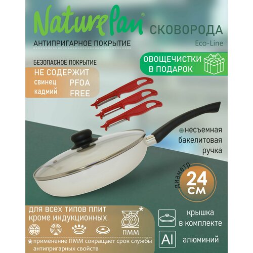 Купить Сковорода с крышкой, с антипригарным керамическим покрытием, d24см, набор овощечисток в подарок, NaturePan Eco-Line с доставкой по всей России. Сковорода с крышкой, с антипригарным керамическим покрытием, d24см, набор овощечисток в подарок, NaturePan Eco-Line: сравнение цен, характеристики, фото, актуальное наличие и цены.