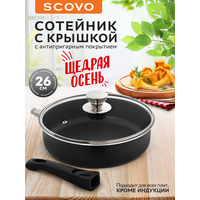 Купить Сковорода с крышкой с антипригарным покрытием 26 см со съемной ручкой Easy Cook SCOVO с доставкой по всей России.