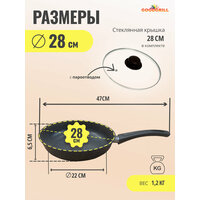 Сковорода с крышкой толстостенная из литого алюминия 28 см с трехслойным антипригарным покрытием GOODGRILL: сравнение цен, характеристики, фото, актуальное наличие и цены.
