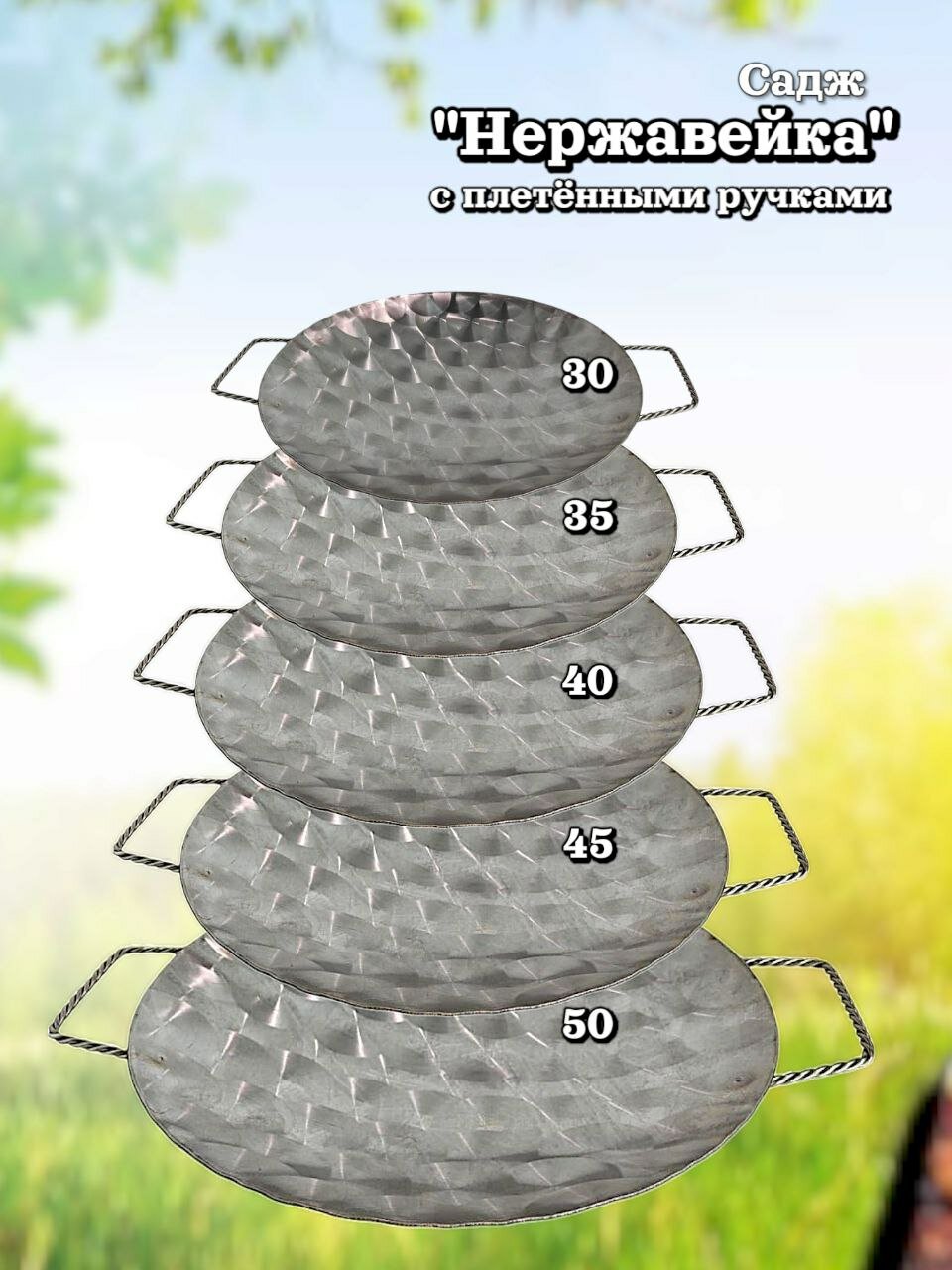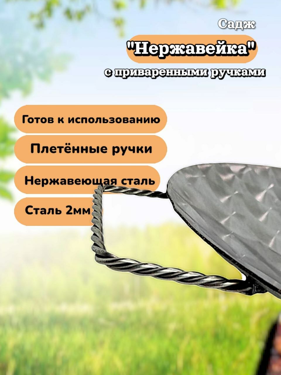 Купить Сковорода-садж 45, сталь, антипригарное покрытие, серебристая, плетенные ручки КазаныРФ с доставкой по всей России.