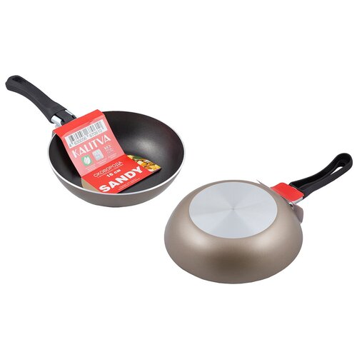 Сковорода из новой линейки Sandy TM KALITVA это комфортное и быстрое приготовление любимых блюд. Благородный золотистый цвет и уютное настроение на вашей кухне. Практичный диаметр 16 см, крепкая и удобная бакелитовая ручка, антипригарное покрытие с высокой износостойкостью и превосходными защитными свойствами, такие характеристики позволяют готовить на сковороде Sandy интенсивно, разнообразно и с удовольствием. Корпус сковороды из чистого пищевого алюминия прочен, устойчив к воздействию высоких температур и абсолютно безопасен. Использование минимального количества масла при жарке легкое мытье и стильный дизайн понравятся любой хозяйке.