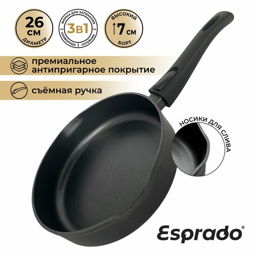 Купить Сковорода со съемной ручкой из алюминия Esprado Prospero 26см с трехслойным антипригарным покрытием с доставкой по всей России.
