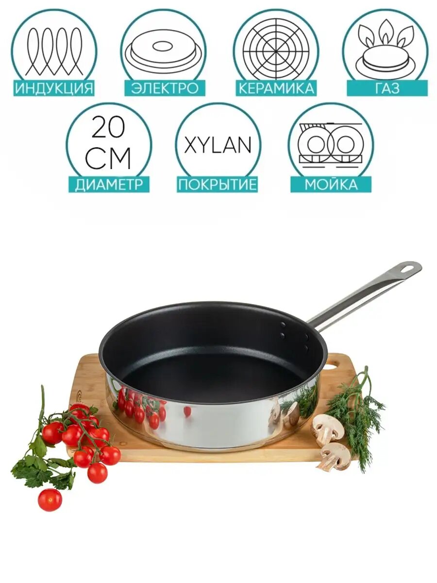 Купить Сковорода сотейник глубокая 20см, Xylan, индукция, нерж с доставкой по всей России. Сковорода сотейник глубокая 20см, Xylan, индукция, нерж: сравнение цен, характеристики, фото, актуальное наличие и цены.